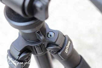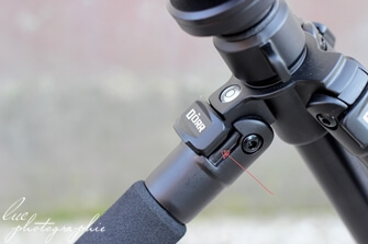 Nicht nur den 3D-Neigekopf kann man individuell positionieren. Das geht auch mit den Beinen! Zieht man die unscheinbaren Dörr-Kappen an den Beingelenken hoch, kann man die Beine beliebig weit auseinander stellen. Auf den ersten Blick sieht das Stativ nun wacklig aus, doch das ist es in keinem Fall! trotz „lockerer“ Beingelenke und geöffneter Kappen ist das Stativ ebenso standfest, wie in der normalen Postion. Das gilt natürlich auch, wenn die Beine enger gestellt werden!