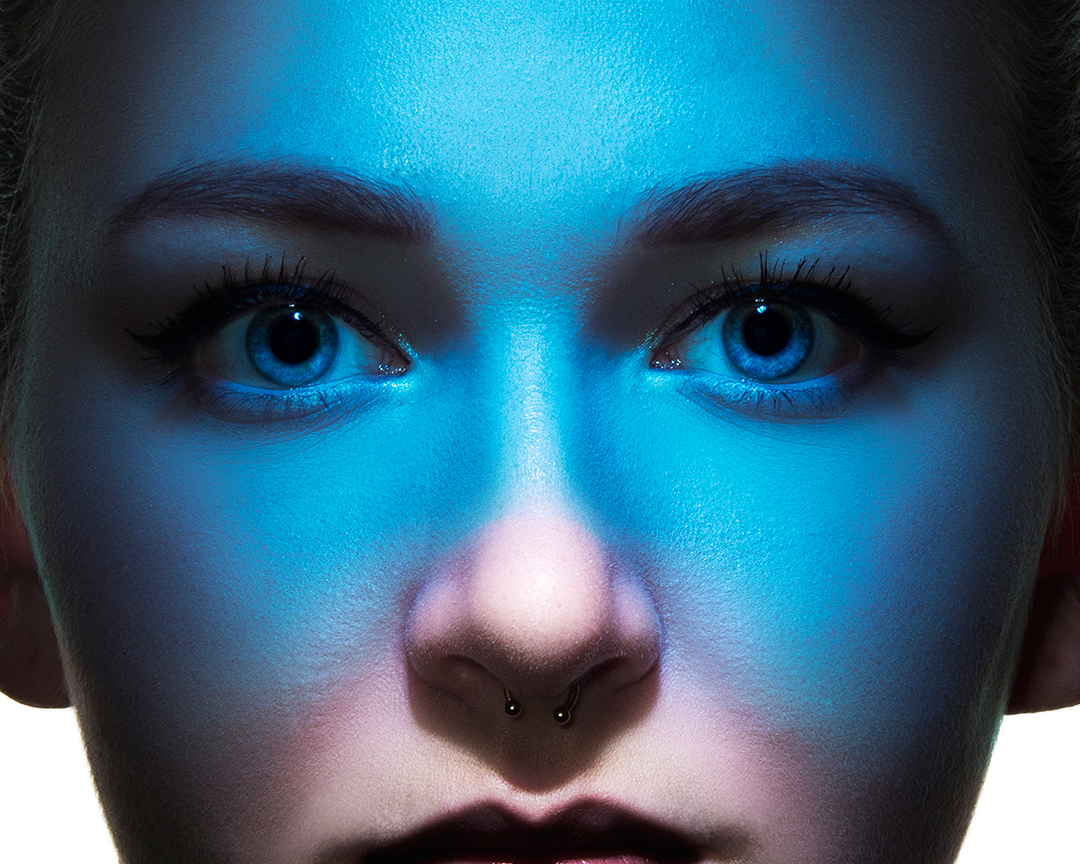 Insgesamt war ich für das Projekt zwei Mal im Studio. Einmal um den Grundaufbau aufzubauen und ein erstes Testfoto zu machen. Das zweite Mal erstellte ich das Finale Bild. Eine Mitschülerin stand Model während ein weiterer Schüler die Folie positionierte. Du glaubst nicht, wie schwierig es ist, alles zu koordinieren. Schließlich hat jeder seine eigene Meinung, wie das Ganze am besten funktionieren könnte. Nach einige Hin und Her hatte ich das Bild Gott sei Dank im Kasten!